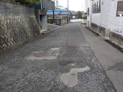 側溝の蓋をのせているコンクリートが欠けています。道路の中央なので、人や自転車等がつまずく危険が大きいです。実際につまずいた事例が多くあります。早急なるご対応よろしくお願いいたします。
