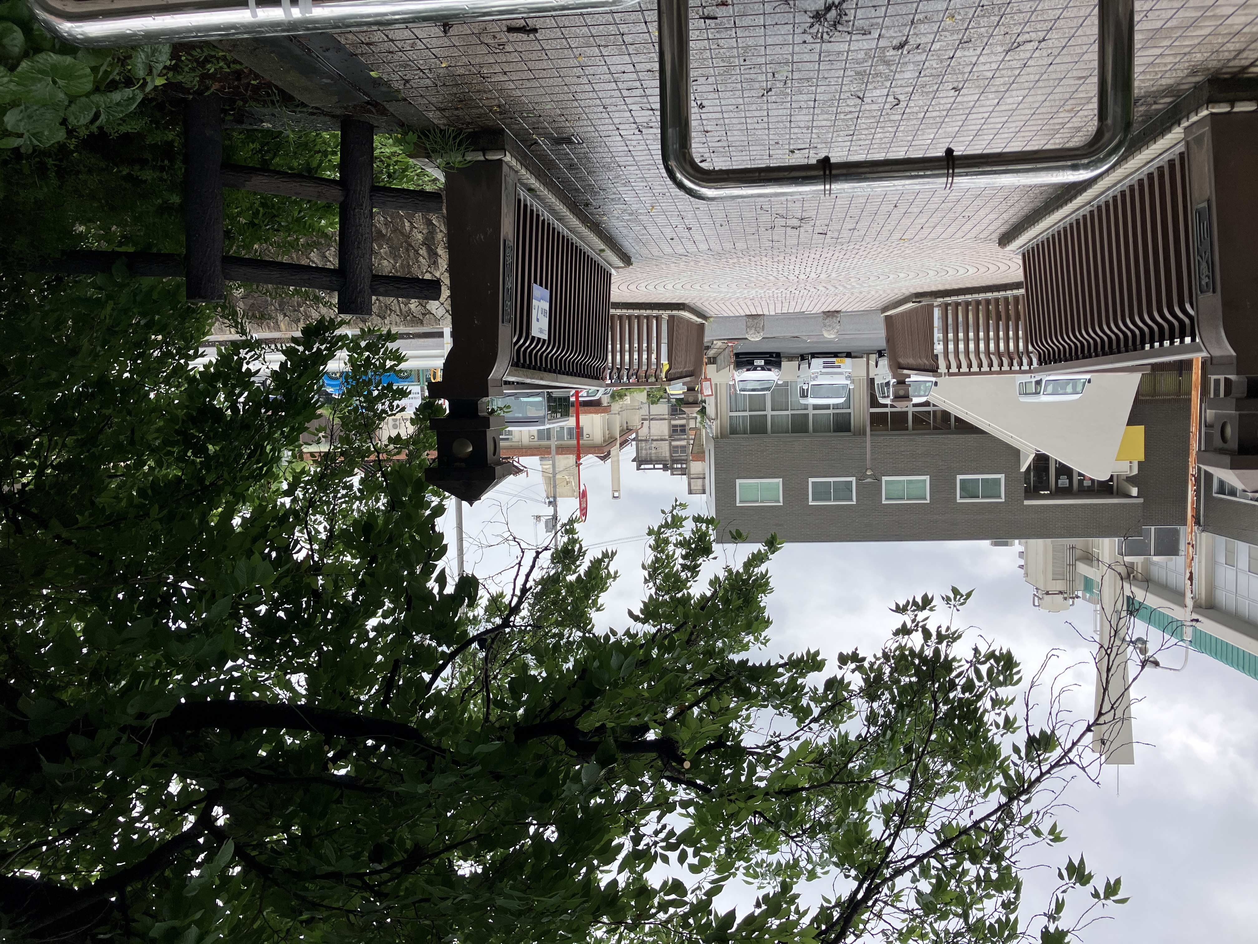 通行に支障が出てますので、傘を差しても当たらない程度の高さまで剪定してもらえると助かります。
