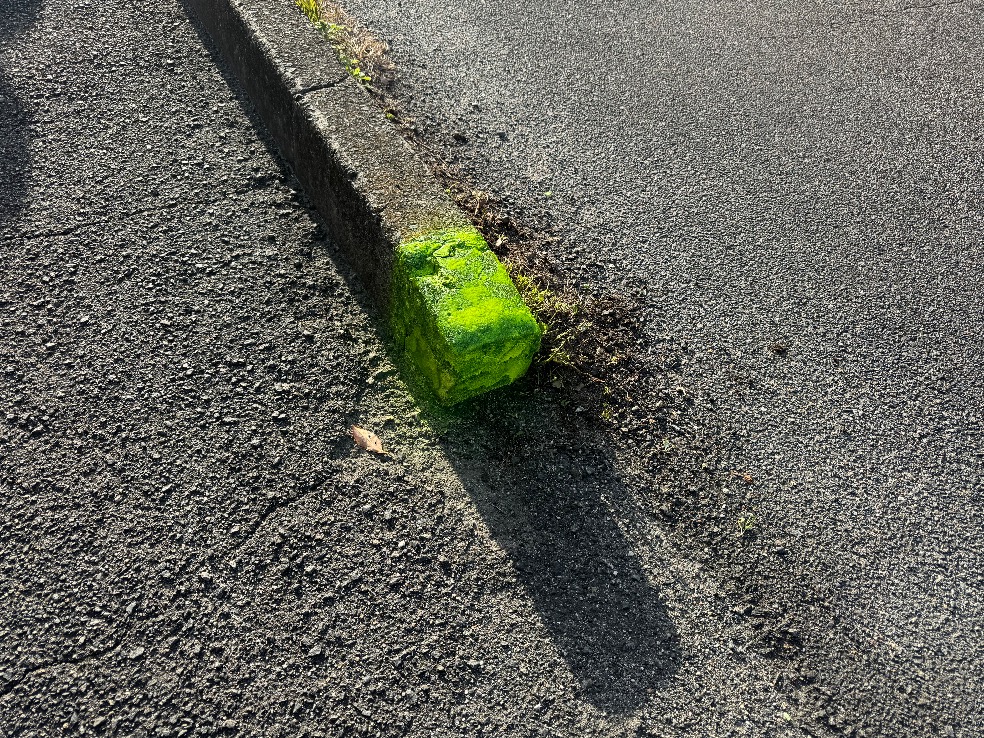 また、縁石にのりあげています。
